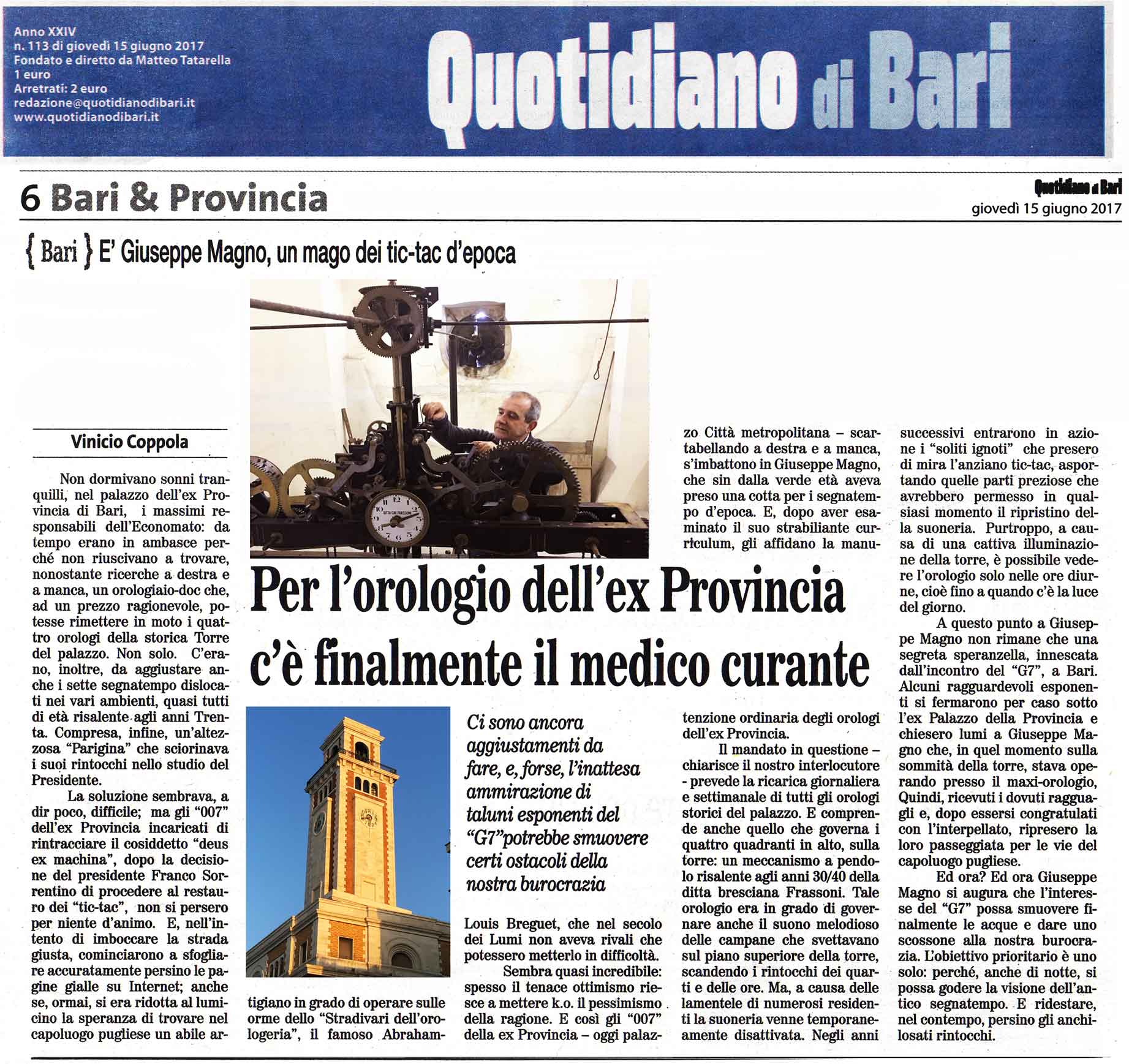 IL QUOTIDIANO DI BARI DEL 15 GIUGNO 2017